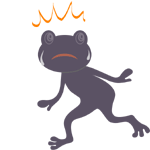 Tシャツの布を掴んで振り落とされないように頑張るカエルの図。