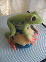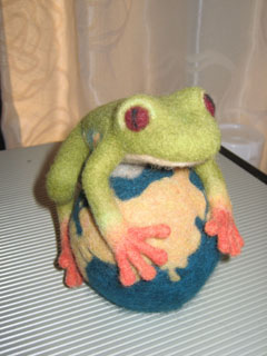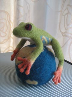 しかし、目の前に作りかけの羊毛フェルト蛙どもが何匹も控えているなぁ。
